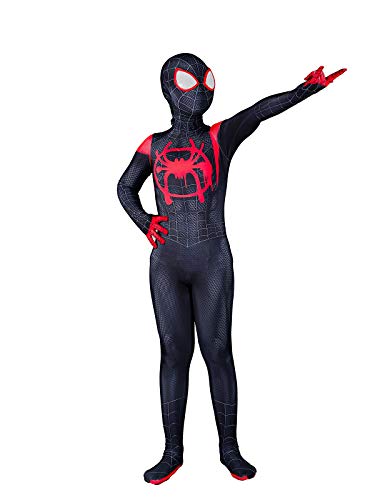 Unisex Halloween Costume Miles Morales Cosplay Bodysuit Pretend Play Suit with Detached Mask Adult Kids